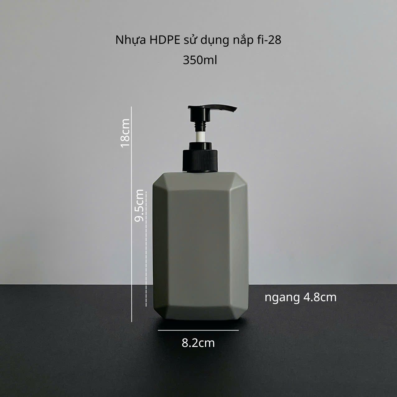 Chai nhựa HDPE vuông xám 350ml vòi nhấn fi28 không chỉ đáp ứng các tiêu chuẩn về chất lượng và tiện ích mà còn mang lại hình ảnh hiện đại, chuyên nghiệp cho thương hiệu của bạn. Nếu bạn đang cần một giải pháp bao bì đẹp – bền – giá hợp lý, thì đây chắc chắn là sự lựa chọn không nên bỏ qua.