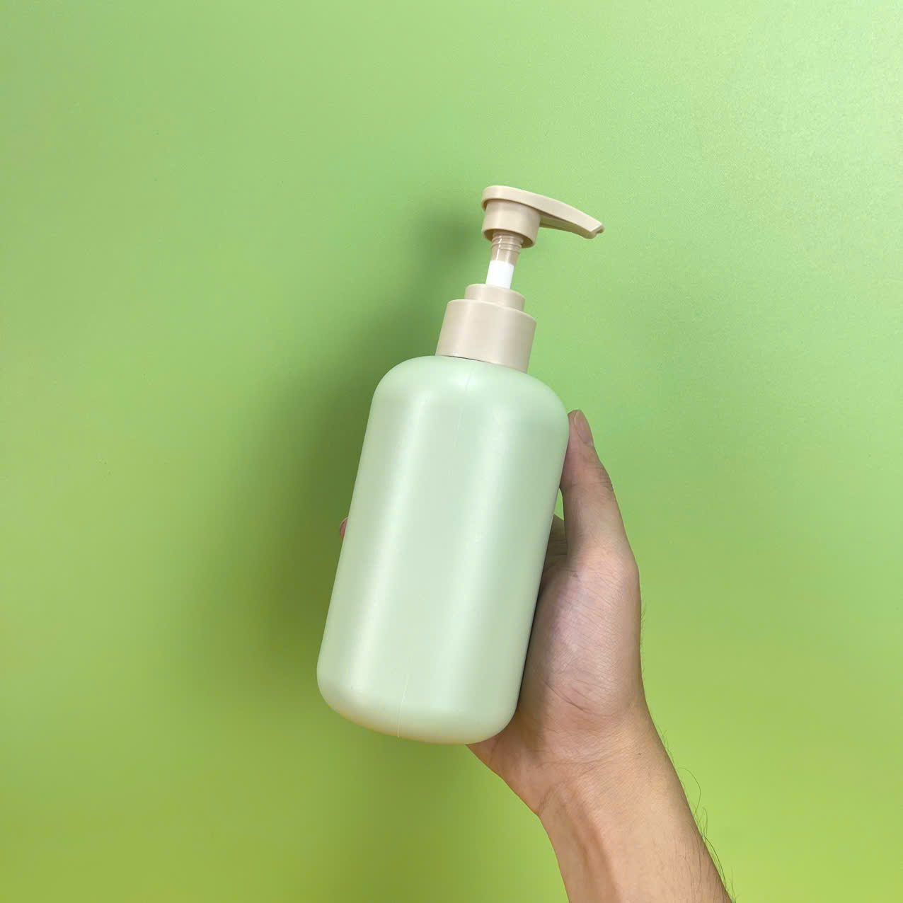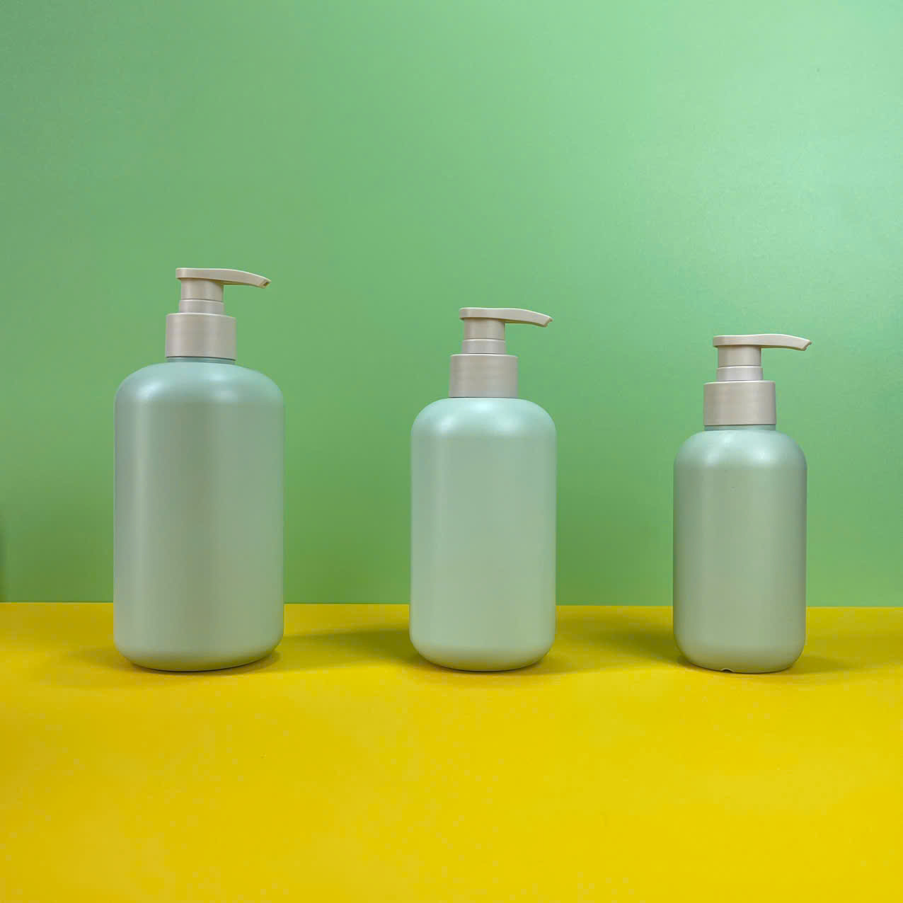 Chai nhựa HDPE xanh tròn nổi bật với màu xanh mint thanh mát, mang đến cảm giác dễ chịu và tinh tế. Thân chai dáng trụ tròn đơn giản nhưng không kém phần sang trọng, phù hợp với đa dạng không gian từ phòng tắm gia đình đến spa cao cấp.