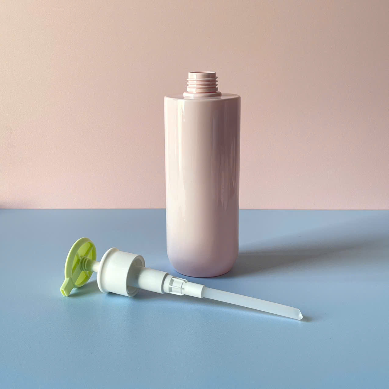 Chai nhựa PET hồng vai ngang đáy bầu với vòi nhấn dẹp xanh 500ml sử dụng vòi nhấn fi28 tiện lợi – Thiết kế đẹp mắt, chất liệu an toàn, ứng dụng đa năng