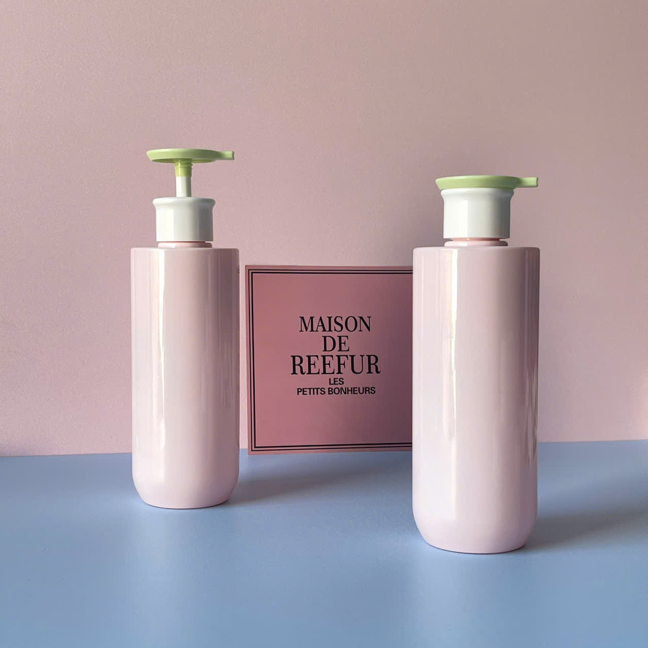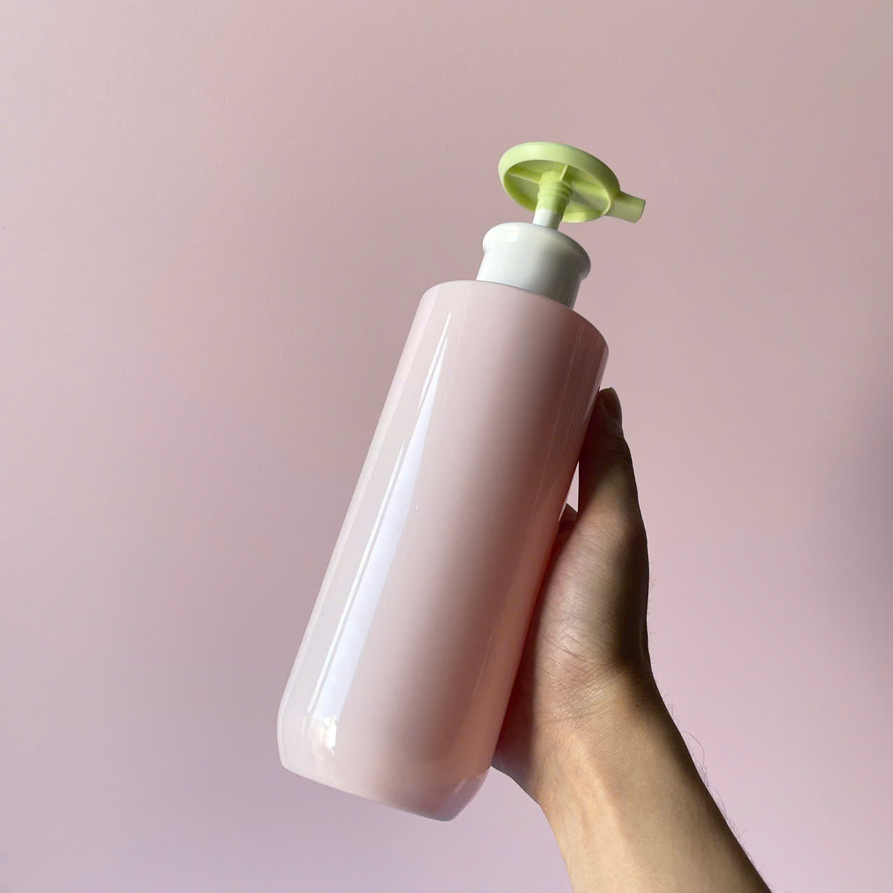 Màu hồng trong mờ mang đến cảm giác nữ tính, tinh tế, đồng thời cho phép nhìn thấy lượng dung dịch bên trong – tiện lợi khi sử dụng. Vòi nhấn dẹp xanh tạo điểm nhấn đối lập nổi bật và sang trọng, mang đến vẻ ngoài chuyên nghiệp cho tổng thể sản phẩm.
