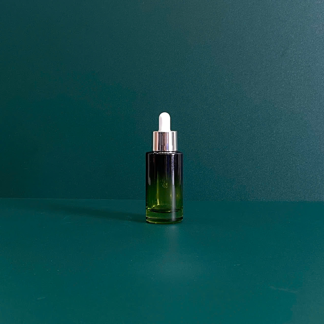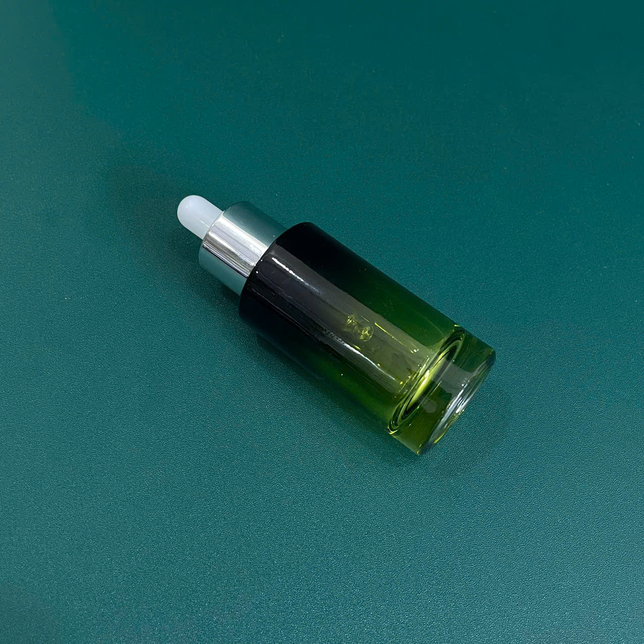 Màu thủy tinh xanh rêu chuyển sắc từ nhạt đến đậm tạo nên vẻ đẹp tinh tế, đồng thời giúp bảo quản tốt các loại tinh chất nhạy cảm với ánh sáng. Nắp bấm bạc sáng bóng kết hợp đầu bóp cao su trắng hỗ trợ lấy serum chính xác, nhỏ giọt đều tay.